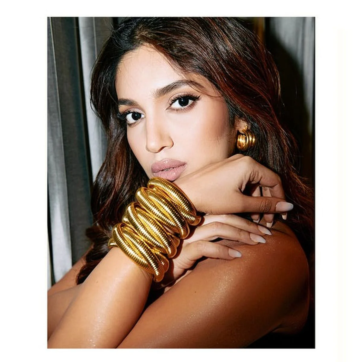 Serpentine Three Layered Golden Viper Bhumi Pednekar Bracelet