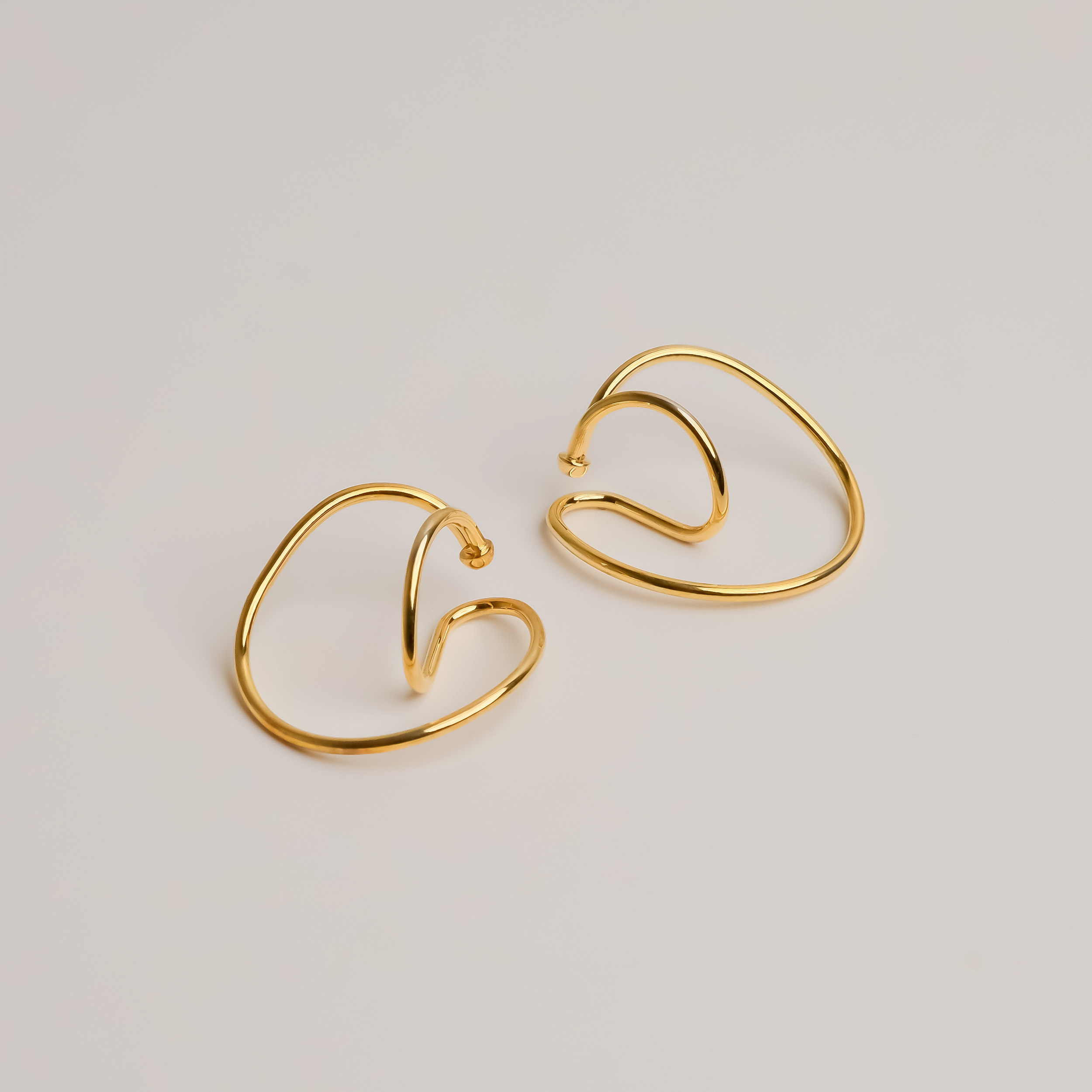 Embrace the allure of effortless chic with Fayah’s Twisted Gold Earcuffs. These captivating ear cuffs feature a unique design where the gold wire seems to dance and twist around the ear, creating a look that is both modern and unexpected. The sleek gold finish and dynamic movement add a touch of personality and individuality, making these ear cuffs a statement piece for the modern woman.