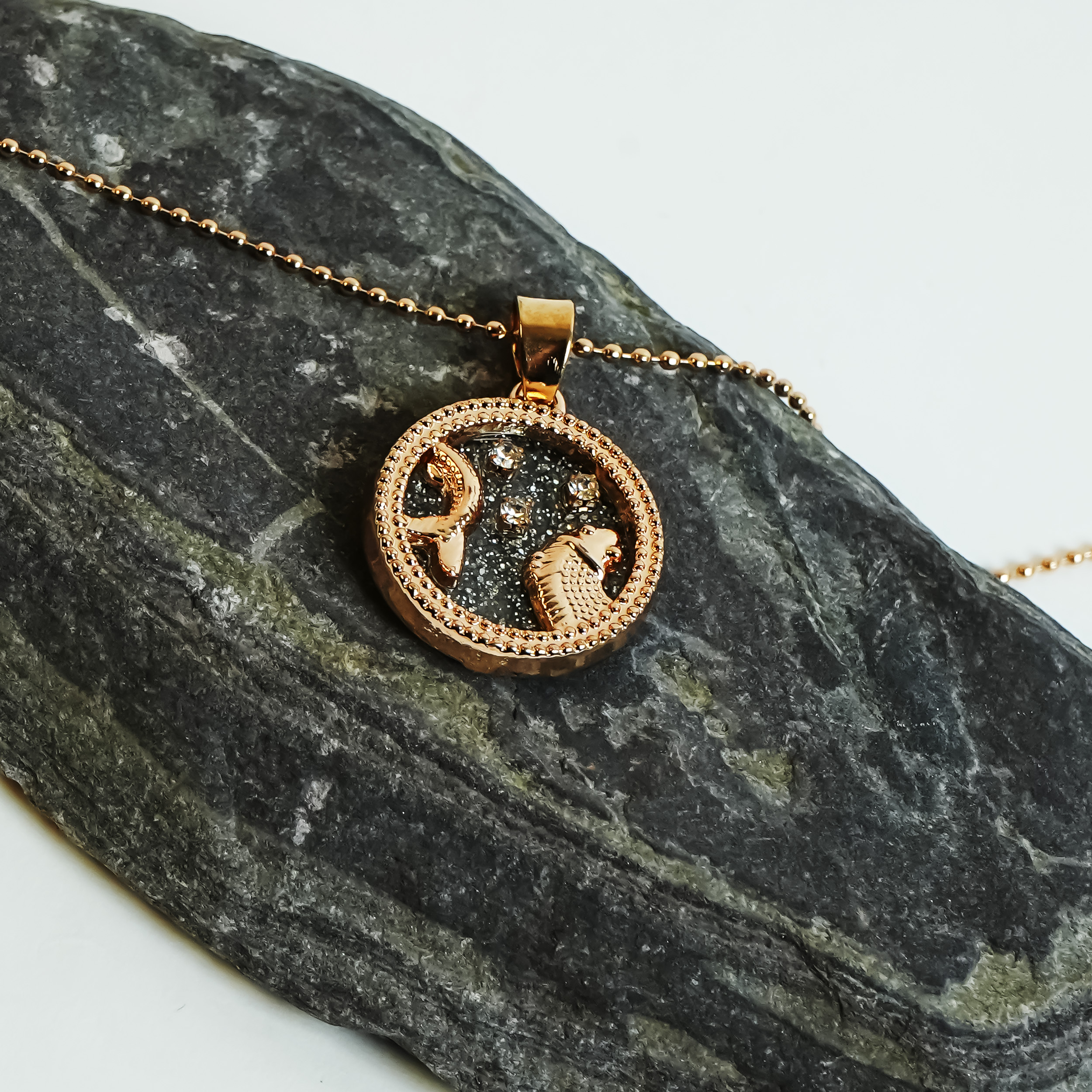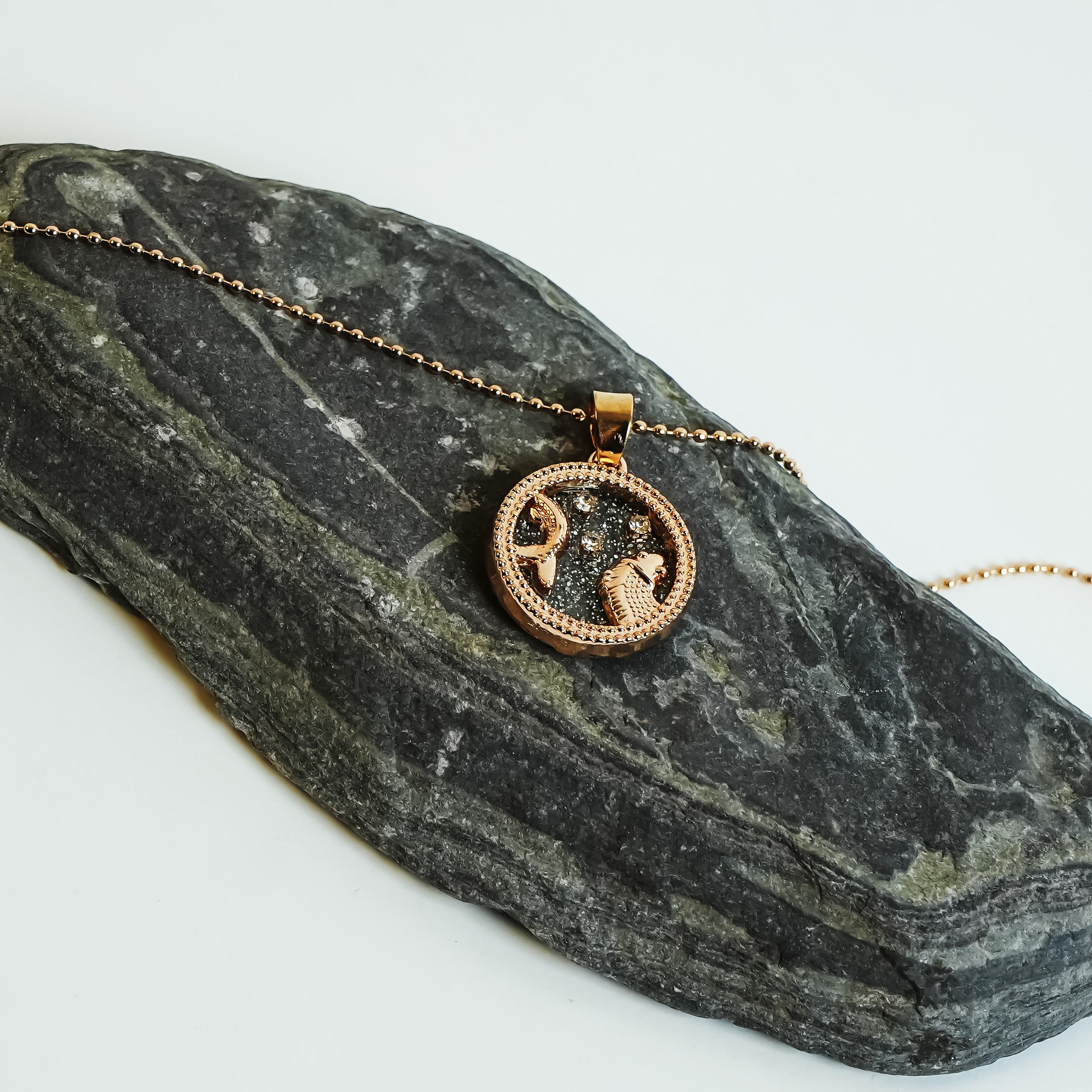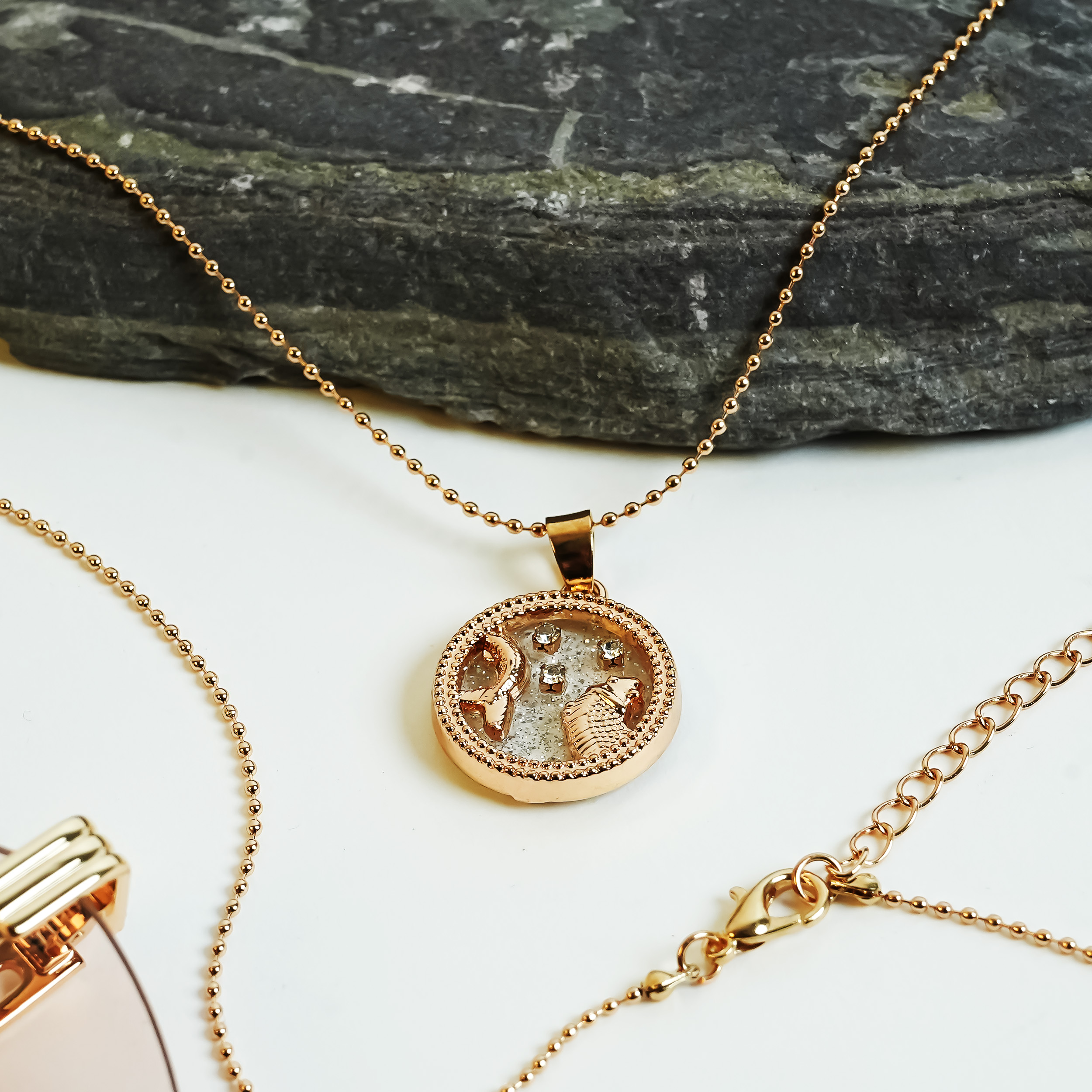 Dive into the depths of your Pisces spirit with the Ocean Odyssey Pisces Zodiac Necklace. This captivating pendant features a detailed Pisces symbol surrounded by shimmering crystals, evoking the mystical and dreamlike qualities of this water sign. The delicate chain adds a touch of elegance, making it perfect for everyday wear. Dress it up with a cocktail dress for a night out. The versatility of this necklace allows you to incorporate it into your wardrobe effortlessly.