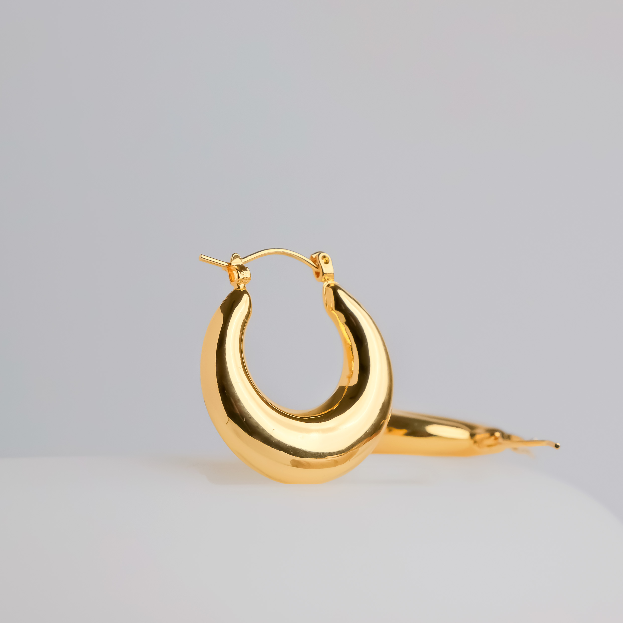 Indulge in the allure of the Siren Call Hoops, a captivating piece that effortlessly elevates any ensemble. These exquisite earrings, crafted from 18kt gold-plated stainless steel, boast a bold, oversized design that demands attention. The curved, crescent shape gracefully frames your face, while the polished finish catches the light with every movement. Let the Siren Call Hoops be your secret weapon, captivating hearts and turning heads wherever you go.