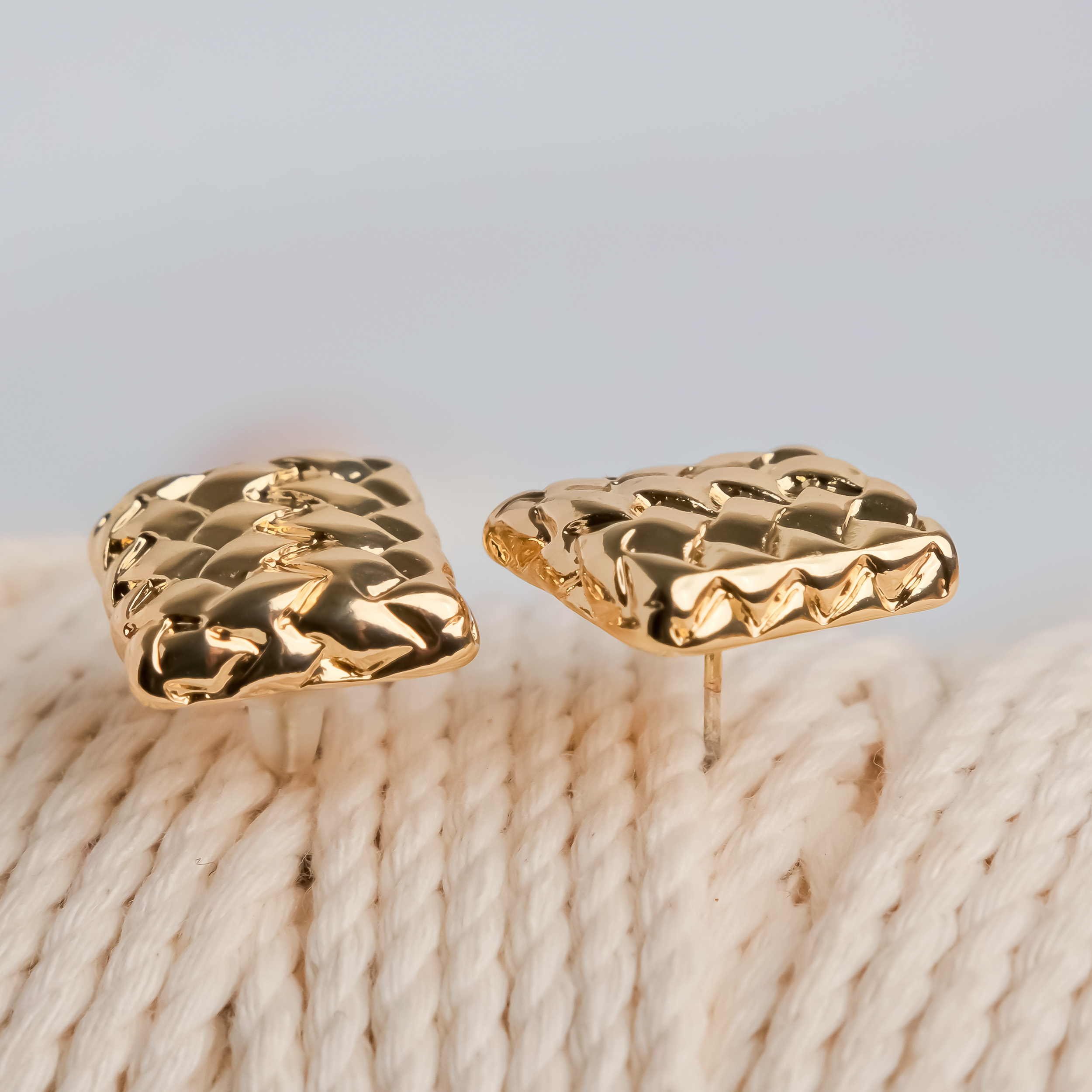 Textured Square Gold Earrings